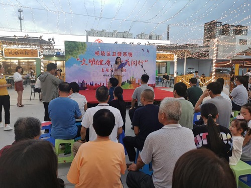 为推进健康促进区创建工作深入开展,进一步提升居民健康素养,8月25日晚,在凤鸣桥北便民市场,杨陵区卫健局举行了一场丰富多彩的文艺演出。演出以“文明健康,你我同行”为主题,此次活动得到了区委、区政府支持,由区卫生健康局主办,区委宣传部、组织部和区健康教育中心协办。