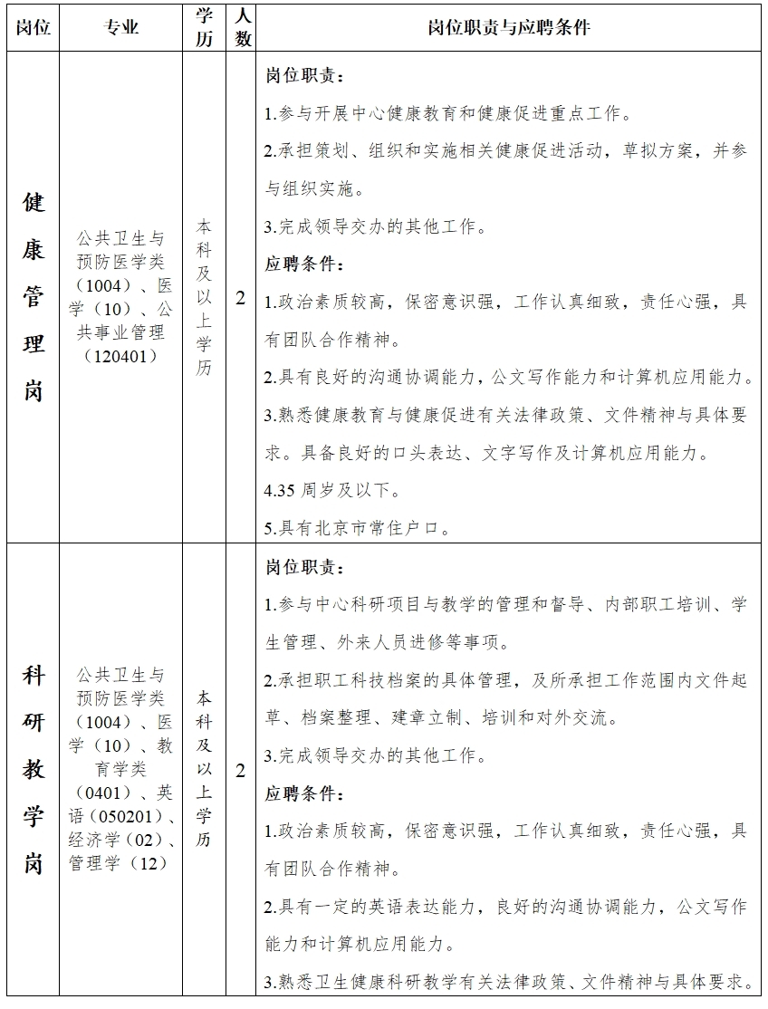 中国健康教育中心(以下简称“中心”)是国家卫生健康委员会直属事业单位。结合实际工作需要,中国健康教育中心本次公开招聘编内工作人员6名。现将有关事项公告如下: