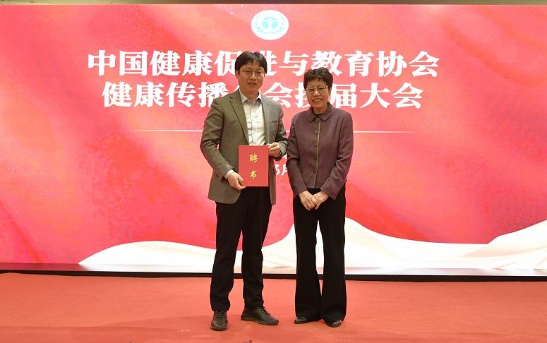 中国健康促进与教育协会常务副会长兼秘书长孔灵芝为新任主委肖砾颁发聘书