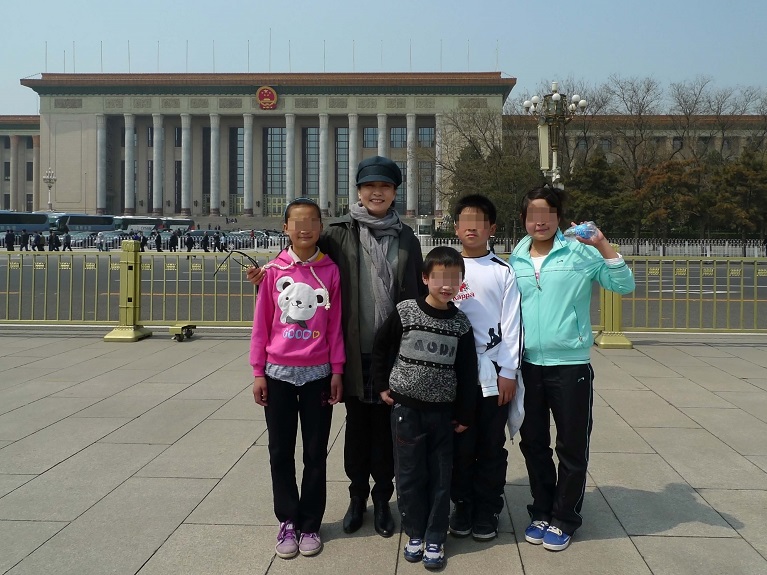 2010年4月,彭丽媛带孩子们参观天安门广场