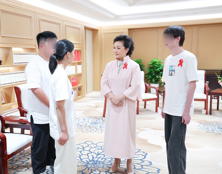 2006年彭丽媛受聘担任原卫生部预防艾滋病宣传员,到安徽阜阳看望受艾滋病影响儿童,同当时还是孩童的3名青年相识,多年来一直关心关注他们的成长发展。3名青年现在都已完成学业,走向社会,他们向彭丽媛讲述了各自工作生活近况和参加志愿服务的体会,表达了对党和政府、社会各界关爱的感激之情。彭丽媛亲切地说,往事历历在目,看到你们的成长变化感到非常欣慰。她鼓励青年们自立自强,努力工作,做对社会有用的人,靠自己的奋斗创造更加美好的生活。