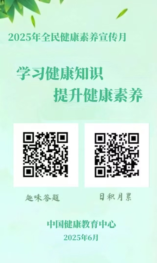 全民健康素养宣传月来啦!为提升公众健康素养,助力健康中国建设,中国健康教育中心开展“学习健康知识 提升健康素养”答题活动。全民提素养,人人享健康!一起参与答题,为健康生活加分!