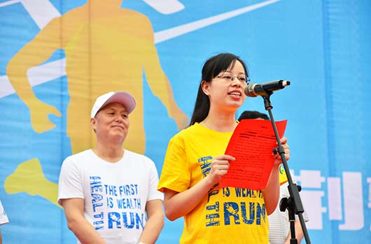 武汉市居民宣读“每天一万步 健康荆楚行”倡议书