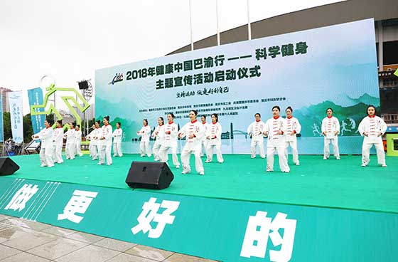 2018年9月20日上午,由重庆市卫生计生委、体育局、教委、总工会、共青团、妇联、九龙坡区人民政府共同主办,重庆市健康教育所、体育科学研究所、九龙坡区卫生计生委共同承办的2018年健康中国巴渝行——科学健身主题宣传活动启动仪式在九龙坡区奥林匹克体育中心五环广场隆重举行。重庆市人大常委会副主任沈金强出席并宣布活动启动,中国健康教育中心党委书记、主任李长宁出席活动并致辞。活动由重庆市体育局党组成员、副巡视员陈玉林主持。