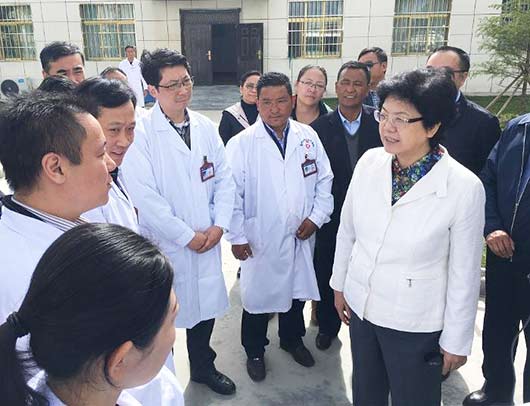 7月31日,国家卫生计生委主任李斌一行视察了拉萨市墨竹工卡县人民医院、拉萨市达孜县塔杰乡卫生院,看望医院医务人员及对口支援医务人员,考察远程会诊系统,对藏区基本医疗卫生和公共卫生服务工作情况作了全面了解,并走访慰问了当地藏族村民。