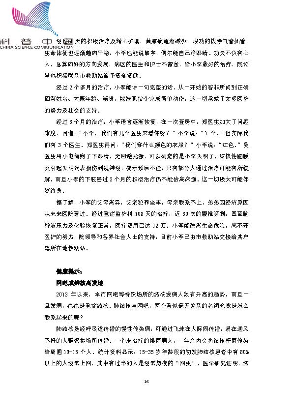 身边的结核病故事——网吧潜伏“结核”杀手,年轻小伙终身残疾