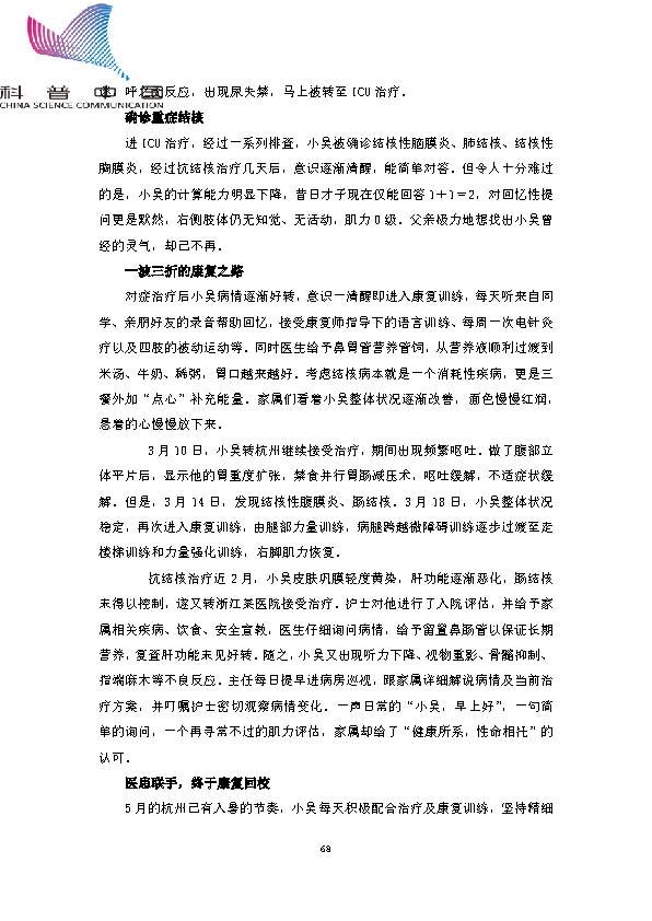 身边的结核病故事——重症结核学霸的坎坷抗痨之路