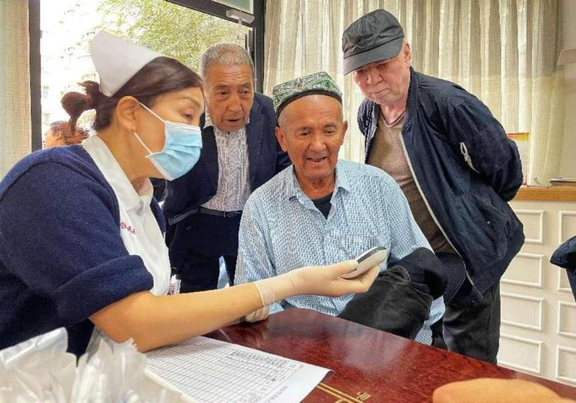 日间照料中心医疗团队定期为老年人检测血糖